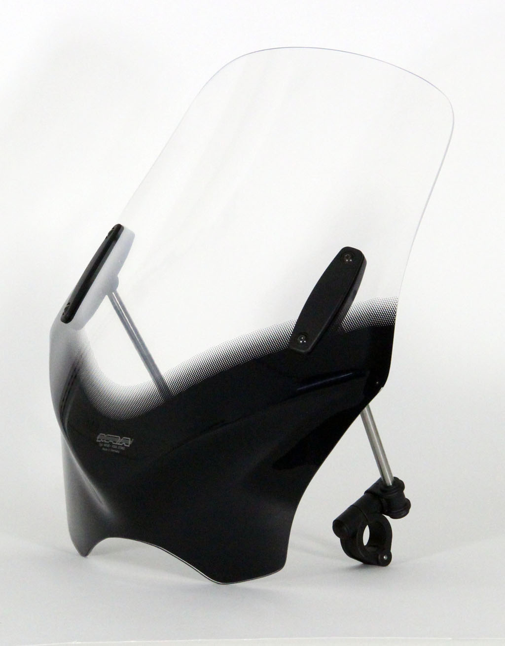 MRA plexi UNI V - Flow C čiré. Ochrana proti větru. Plexi MRA UNI V-Flow, délka 420 mm, šířka 400 mm, barva čiré. K plexi je nutné dokoupit montážní sadu HK. Certifikace ABE:Ano. Německý výrobce plexiskel s více než 25-ti letou tradicí. Specialista na motocyklové plexiskla. Použivaný materiál je speciálně modifikované PMMA. MRA vyrábí nástavce na plexiskla takzvané zvýšení, plexiskla tvaru racing, originál, spoiler a turistické. Specialitou je nastavitelné plexisklo Vario Screen. Na prvotřídní kvalitu spolehají jezdci Moto GP, Moto 2, Moto 3, Supebike, Endurance. Veškerý vývoj , výzkum a výroba probíhá u MRA. Výrobky jsou prodávany po celém světě. MRA je držitelem EN ISO 9001:2000.