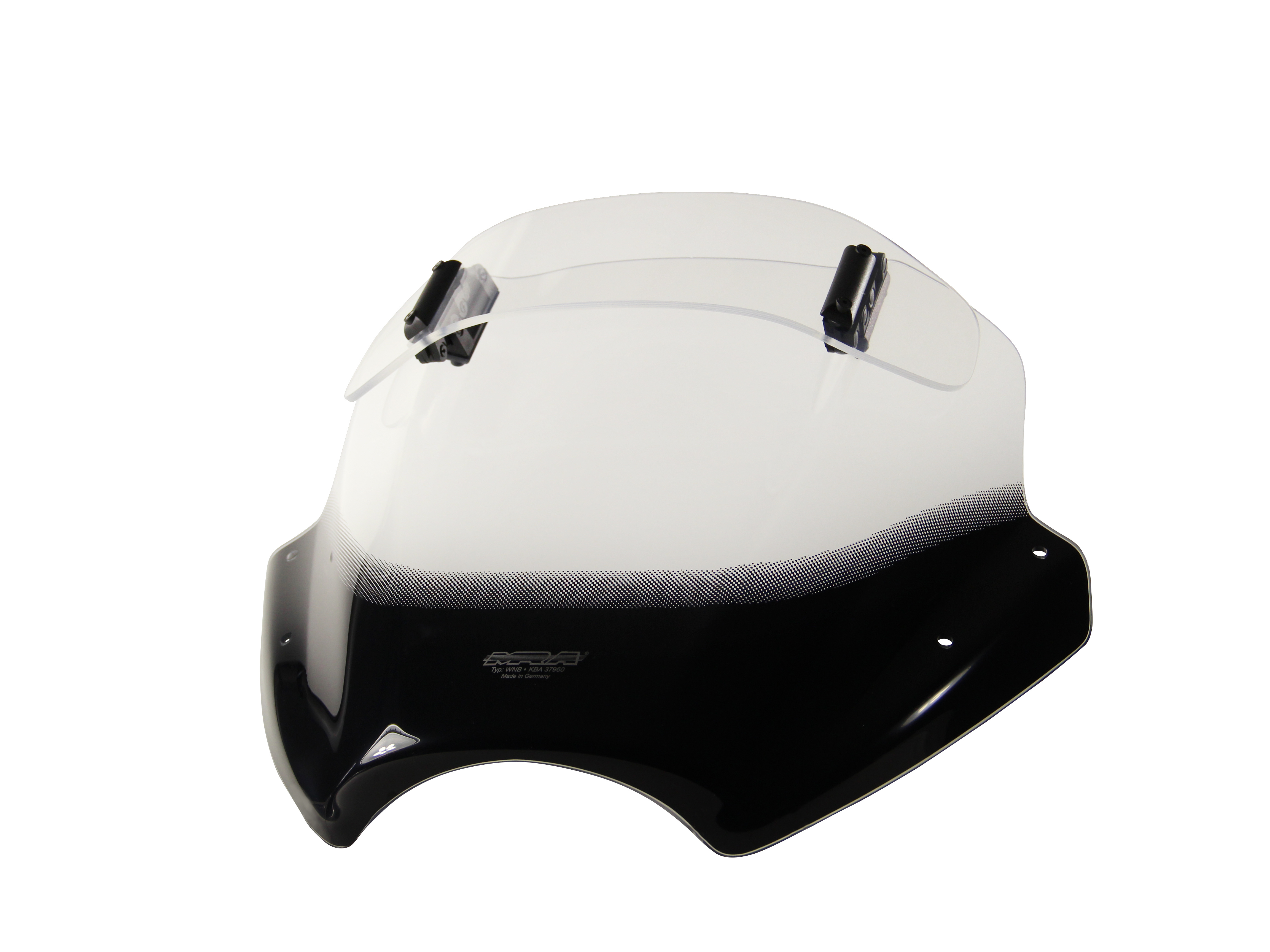 MRA plexi UNI VTNB Variotouring kouřové pro naked bike. Délka mm: 335, šířka mm: 400. Pro řídítka dokupte montážní sadu. Plexi MRA UNI Variotouring, typové označení: VTNB. Montážní sada HK, barva kouřové. K plexi je nutné dokoupit montážní sadu HK. Certifikace ABE:Ano. Německý výrobce plexiskel s více než 25-ti letou tradicí. Specialista na motocyklové plexiskla. Použivaný materiál je speciálně modifikované PMMA. MRA vyrábí nástavce na plexiskla takzvané zvýšení, plexiskla tvaru racing, originál, spoiler a turistické. Specialitou je nastavitelné plexisklo Vario Screen. Na prvotřídní kvalitu spolehají jezdci Moto GP, Moto 2, Moto 3, Supebike, Endurance. Veškerý vývoj , výzkum a výroba probíhá u MRA. Výrobky jsou prodávany po celém světě. MRA je držitelem EN ISO 9001:2000.